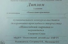 Диплом I степени "Новогодний карнавал" 04.04.2018