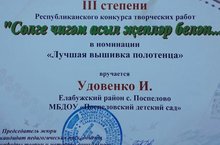 Диплом III степени в Республиканском конкурсе творческих работ "Сөлге чигән асыл җепләр белән..." 06.04.2018