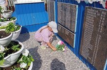 Аннары балалар Поспелово авылында урнашкан сугыш геройлары һәйкәленә юнәлделәр. Балалар хөрмәт һәм курку белән Монумент итәгенә чәчәкләр салдылар, һәлак булган сугышчыларны бер минут тынлык белән искә алдылар.