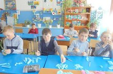 Силами старшеклассников школы готовится гирлянда из еловых веток для возложения памятнику павшим воинам Великой Отечественной войны. Обучающиеся младших классов изготавливают бумажные цветы для гирлянды, подарки ветеранам, детям войны.