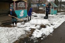 Өмә/Средник 13.04.2022 Чәршәмбе көнне бакча хезмәткәрләре эреп бетмәгән карларны тараттык./Сегодня у нас средник.Работники детского сада дружно раскидали снег.
