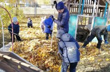 Бакчабыз хезмәткәрләре балалар белән берлектә территориядәге коелган яфракларны җыйдылар. Балалар да бик теләп безгә ярдәм иттеләр./Сегодня мы вместе с детьми очистили территорию от листьев.