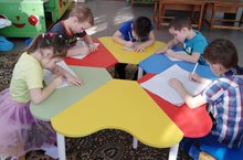 Бакчабызга "Ромашка"чәчәге итеп ясалган өстәлләр кайтты.Аларны җыю өчен беренчеләрдән булып Мухаметзянов Рәмис һәм Ильназлар гаиләсе ярдәмгә килде.Аларның гаиләләренә зур рәхмәтебезне җиткерәбез, исәнлек -саулык теләп калабыз/В наш детсий сад привезли новые столы.Собрать их нам помогли родители наших воспитанников. Семьям Мухаметзяновым большое спасибо.