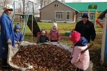 Бүген без балаларыбыз белән берлектә коелган яфракларны җыярга чыктык. Шулай итеп без балаларга хезмәткә мәхәббәт тәрбиялибез./ Сегодня мы вместе с детьми вышли на средник собирать опавшие листья.так мы прививаем любовь к труду.