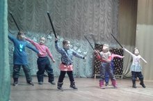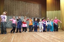 Балалар белән көн саен мәдәният йортына барып бию-җырларыбызны кабатлыйбыз./ Каждый день с детьми в доме культуры повтаряем песни, пляски.