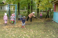 Көз җитте, яфраклар коела башлады. 23.09.2016 Көз җитүгә, яфраклар саргаеп коела башладылар.Көн матур булу сәбәпле, без дә тырмаларыбызны алып территориябезне җыештырып алдык.