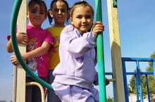Сентябрь ае булса да, көннәр җәй аелары кебек җылы. Без балалар белән уен мәйданчыгында рәхәтләнеп уйнадык./Дни как лето теплые. На детской площадьке мы с детьми играли с удовольствием.