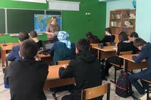 Сегодня в школе работала выездная группа психологов.Учащиеся разделились на две группы (5-7 классы и 8-9 классы). Встреча прошла увлекательно и полезно.