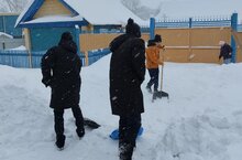 Юнармейцы нашей школы помогли очистить территорию дома ветерану тыла .