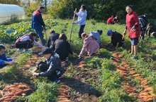 С момента основания школы существует ряд традиций, которые берегут и трепетно хранят. Одна из них – собственный огород, расположенный на пришкольном участке. Здесь с ранней весны начинает кипеть работа. Подготовить грунт, теплицы, позаботится о семенах, подкормить плодово-ягодные деревья. А летом трудовые отряды, из числа учеников школы, уже ухаживают за ранее высаженными растениями. Ассортимент, стоит отметить, богатый. Любой овощ, который можно вырастить – есть. И картошка, и морковь, и свекла, и лук… Сегодня собирали урожай.