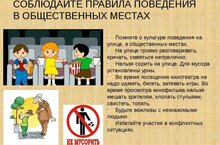Помните, где бы вы не находились: на улице, в общественном транспорте, в театре, вы не одни. Люди смотрят на вас и по вашему поведению судят о вас. Ведь всем нам хочется, чтобы наши друзья, соседи, знакомые всегда бы уважали нас. А весь секрет в том, что только к вежливому, воспитанному и доброму человеку люди относятся всегда хорошо, по доброму. Только такого человека все любят и уважают, и у него есть верные и надёжные друзья. Нам бы хотелось чтобы вы всегда помнили о том, как вести себя в общественных местах, Мы надеемся, что вы всегда будете пользоваться полученными знаниями в повседневной жизни.