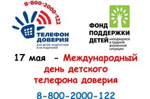 17 мая - Международный день детского телефона доверия 16.05.2018