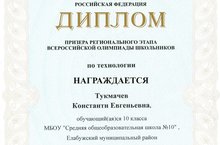 Поздравляем Тукмачева Константина, ученика 10 класса, ставшего призером регионального этапа всероссийской олимпиады школьников по технологии и Гуремулту В.В., учителя технологии, подготовившего призера олимпиады.