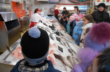 Для первоклассников была организована необычная экскурсия в гипермаркет «Магнит», где ребята узнали, что в большом магазине основным методом продажи является самообслуживание, какое большое разнообразие продуктов расположенно на полках по отделам. В рыбном отделе посмотрели различные виды рыб, как делается лёд. Первоклассники учились самостоятельно узнавать цену по штрих коду на упаковке, взвешивали продукты, проходили через кассу с товаром. В конце экскурсии ребята сделали вывод, что и в магазине необходимо соблюдать правила поведения, за все товары, взятые в магазине нужно платить, а за всем этим следит большое количество камер. -