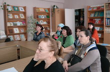 7 октября школьную библиотеку посетили слушатели курсов переподготовки Елабужского колледжа культуры и искусств по специальности "Библиотековедение". В рамках празднования 100-летия со дня рождения Маргариты Алигер для гостей библиотеки и учащихся 6В класса (учитель Рыбникова И.А.) был проведен литературно-познавательный час, посвященный жизни и творчеству поэтессы. После показа мероприятия зав.библиотекой Е.Н.Мишина поделилась опытом своей работы: рассказала о краеведческой деятельности, инновационных формах поддержки чтения, отвечала на вопросы гостей. На примере презентации Елены Николаевны, оформленной к профессиональному конкурсу, куратор слушателей курсов Сираева Мавлида Валиулловна сделала комментарии и рекомендации по оформлению презентаций к проектам и при защите дипломной работы.