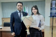 Сегодня в рамках городской планерки руководителей глава Елабужского района Рустем Нуриев поздравил ученицу 10В класса Разилю Ахмадиеву с достойным выступлением на республиканском конкурсе. Разиля завоевала 3-е место в республиканском интерактивном конкурсе по безопасности дорожного движения в сервисе " Я- школьник" среди 9-11 классов. Напомним, что конкурс проводился среди учеников 7-11 классов - пользователей приложения «Я – школьник» в формате квеста. Пользователи приложения смотрели интерактивный сериал, управляли решениями и действиями героев сюжета и набирали баллы.