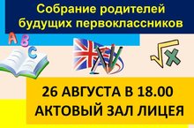 Приглашаем родителей будущих первоклассников на собрание, которое состоится 26 августа в 18.00 в актовом зале школы.