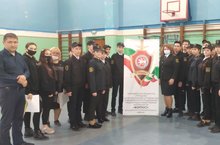 Сегодня,в честь 76-ой годовщины победы в Великой Отечественной войне, в нашей школе прошел конкурс-смотр строя и песни среди школьных отрядов профилактики правонарушений Форпост. Бүген, Бөек Ватан сугышында Җиңүнең 76 еллыгы уңаеннан, безнең мәктәптә, Форпост хокук бозуларны кисәтү буенча мәктәп отрядлары арасында строй һәм җыр смотры булып узды.