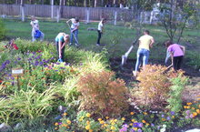 Каждую неделю ученики и учителя выходят на территорию школы, чтобы убрать опавшие листья.