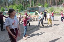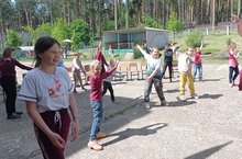В оздоровительном лагере "Крепыши" сегодняшний день посвятили играм на свежем воздухе. Педагоги организовали для отдыхающих подвижные игры: "Снайперы", "Скачка" и "Море волнуется". В первой игре игроков поделила на две команды. По жребию одна из команд выходила на линию "огня" (обозначенная линия) и выстраивались в шеренгу. Все получили по маленькому мячу. В 3-5 метрах от них расставили 8-10 кеглей (с интервалом 50 см). По сигналу все игроки команды залпом бросали мячи, стараясь сбить кегли. Затем мячики кидала другая команда. Выигрывала команда , сбившая больше кеглей. А в игре "Скачка" по считалке ребята выбирали водящего и становились в круг. Хлопая в ладоши, они скакали галопом по кругу, изображая всадников. Скачку выиграли те, кто на лету подхватит платок, брошенный водящим в центр круга. Ещё интереснее была игра "Море волнуется". И в этой игре по считалке выбирали водящего. Водящий произносит слова: "Море волнуется раз, море волнуется два, море волнуется три, фигура на месте - замри", Ребята замирают в позах, соответствующих той фигуре, которую попросил водящий, например, лыжник, йога и т д. Водящий, прохаживаясь между играющими, выбирал понравившуюся ему фигуру. Этот участник и будет следующим водящим. Отдыхающим эти игры очень понравились.