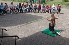 Традиционно утро в лагере начинается с зарядки на свежем воздухе.