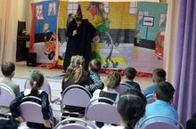 Сегодня в гостях у воспитанников дошкольного учреждения и учащихся начальной школы побывали в гостях сказочные герои: инспектор Смирнов, Буратино, доктор Злюк. Вместе с героями Набережночелнинского театра «Калейдоскоп» ребята участвовали в играх и викторинах на знание правил дорожного движения, сигналов светофора, правил поведения в общественном транспорте и на дороге.