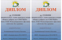 Рукавишникова Елизавета(8 класс) и Ожог Кристина (7 класс) получили диплом 3 степени в муниципальном этапе конкурса-акции "Мир добрых дел СПО -ФДО" в рамках ХХII международного фестиваля «Детство без границ». Руководитель Лобанова Е.А. Поздравляем! Молодцы!