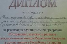 Туган тел һәм әдәбияты укытучысы Нигмедзянова Мөнирә Зиннәтулловнаны дипломы белән котлыйбыз.