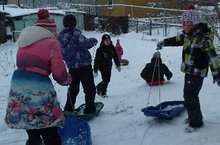 Учащиеся школы лепили снежные фигуры Мәктәп укучылары кардан сыннар ясадылар.