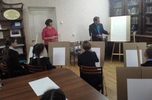 Ребятам было предложено нарисовать любимую книгу и портрет А.С.Пушкина с художником Селиверстовым В.А.Учащиеся 7В класса с удовольствием рисовали и фантазировали.Укуның һәм китапның абруен күтәрү максатыннан Үзәк китапханәдә " Мин китап ясыйм»дигән чара һәм мастер-класс узды. Балаларга яраткан китабын һәм А.С. Пушкинның портретын ясарга тәкъдим ителде. Балалар рэссам В. А. Селиверстов белән очраштылар.