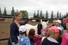 12 июля дети пришкольного лагеря посетили конно-спортивный клуб «Кентавр». Дети познакомились с историей создания спортивного клуба, с породами и достижениями лошадей.Также ребята угощали лошадей принесёнными гостинцами,фотографировались