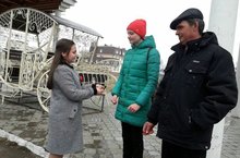 Акция "Георгиевская ленточка". Учащиеся 6а и 6б классов на улице Казанская и на площади раздавали георгиевские ленточки прохожим и рассказывали о ее правильном использовании (как нужно носить ленточку, куда ее можно прицепить, а куда нельзя).