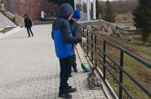 Наши волонтеры, ученики 7А класса, 19 апреля убирались на вечном огне. -