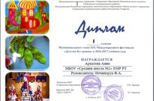 Поздравляем учениц нашей школы Аркатову Анну и Догадину Юлию, занявших первое место на муниципальном этапе XIX Международного фестиваля "Детство без границ". Молодцы!