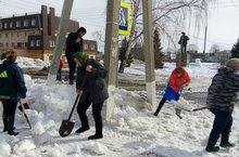 Сегодня коллектив нашей школы вышел на общегородской субботник по уборке снега.