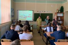 В День славянской письменности и культуры библиотекари Центральной библиотеки имени А.С. Пушкина и школьный библиотекарь провели познавательный час «Через века, несущие свет» для учащихся 8 класса. В ходе мероприятия учащиеся узнали о великих просветителях Кирилле и Мефодии, которые на основе греческого письма создали первый славянский алфавит, с интересом слушали о великих братьях, жизнь которых была служением славянской культуре, служением богу. Мероприятие сопровождалось показом презентации «24 мая – День славянской письменности и культуры»./ Славян язуы һәм мәдәнияте көнендә А.С. Пушкин исемендәге Үзәк китапханә китапханәчесе һәм мәктәп китапханәчесе 8 сыйныф укучылары өчен «Гасырлар аша яктылык ташучы» танып белү сәгате үткәрәләр. Чара барышында укучылар грек язуы нигезендә беренче славян алфавитын булдырган бөек мәгърифәтчеләр Кирилл һәм Мефодия турында белделәр, тормышлары славян мәдәниятенә хезмәт итү, Аллага хезмәт итү булган Бөек абыйлар турында кызыксынып тыңладылар. Чара 24 май Славян язуы һәм мәдәнияте көне презентациясе белән үрелеп барды.