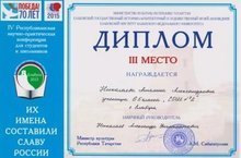 Николаева Ангелина, ученица 6Б класса приняла участие в IV Республиканской научной практической конференции для студентов и школьников с работой о своем прадедушке "История одной личности", которая проходила 3-4 марта в ЕИ КФУ. Ангелина была награждена дипломом 3 степени. Поздравляем! Желаем дальнейших творческих успехов!