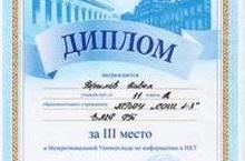 26.01.2013 г. на базе ЕИ К(П)ФУ состоялась Межрегиональная научная Универсиада по предметам: физика, математика и информатика. Среди большого количества участников были учащиеся нашей школы, которые боролись с другими ребятами по предмету информатика и ИКТ. Задания были сложными для всех - достойное III место среди 41 участника занял ученик 11 А класса - Брылёв Павел, который был награждён дипломом. МОЛОДЕЦ!!! Желаем тебе и всем ребятам дальнейших успехов!