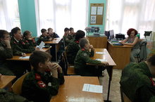После открытия экспозиции руководитель музея Васильева И.В. провела для присутствующих экскурсию. Ветераны боевых действий встретились с кадетами школы.