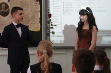 26 апреля, в рамках Недели английского языка, в школе проходило мероприятие « О, великий Шекспир!» ,посвященное 454 –летию со дня рождения великого английского драматурга и поэта. Ребята отвечали на вопросы блиц-викторины « Как хорошо ты знаешь Англию?», отвечали на вопросы по творчеству великого Шекспира, а также состязались в конкурсе чтецов сонетов Шекспира. В конце мероприятия ребятам было предложено просмотреть фильм « Ромео и Джульетта»