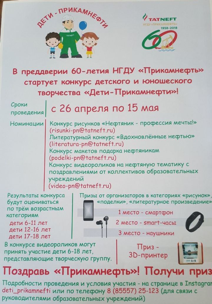 Шәһәрдә “Прикамнефть балалары” исемле балалар һәм яшүсмерләр иҗаты конкурсы бара.