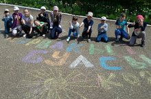 В нашем лагере «Звёздный» сегодня прошел конкурс детского рисунка на асфальте «Путешествие в лето!»