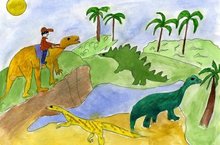 Сегодня в лагере ребята совершили путешествие в эпоху динозавров. Мы поговорили о животных, которые царствовали на Земле в прошлом, рассмотрели кто такие динозавры, а также узнали какими родителями были динозавры и некоторые теории их вымирания. Процарствовав на Земле 160 миллионов лет, динозавры исчезли с лица планеты около 65 миллионов лет назад. Откуда взялись эти гигантские рептилии? Как они в действительности выглядели и почему вымерли? На все эти вопросы отряд искал ответы, просмотрев познавательный мультфильм «Легенда о динозаврах». А во второй половине дня ребята с удовольствием поучаствовали в конкурсе рисунков «Эпоха динозавров» и за лучшие работы все получили призы!
