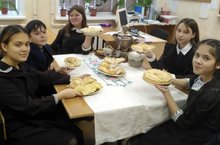 После изучения текста “День рождения“ с учащимися организовали проект-занятие праздник “День Рождения". Каждый ученик приносил на праздничный урок подарки. Среди них любимые татарские национальные блюда-треугольник, кыстбый, бавырсак, чак-чак, губадия, блины и т.д. Эти блюда дети готовили вместе с мамами и бабушками.