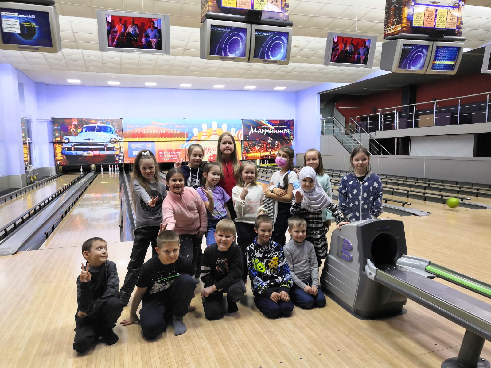 А ребята 2В классапосетили кинотеатр Бруклин, где посмотрели увлекательный мультфильм про домового Финика, перекусили пиццей с соком и с удовольствием поиграли в боулинг