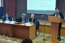 Сегодня на базе МБОУ "Гимназия №1 - центр национального образования" состоялось республиканское семинар-совещание для заместителей начальников Управлений образования по учебно-методической работе Республики Татарстан "Совершенствование системы муниципальной методической службы". В работе семинара участвовали учителя нашей школы: Киняев И.К., учитель английского языка (урок - путешествие "Темза", 9 класс), Краснов Э.О., учитель физической культуры (мастер-класс "Двигаемся с удовольствием"). С проектом, реализуемым школой "Интернет-студия подростковой журналистики "Восьмая школа" работали учащиеся 6б класса: Адеева Гузель, Ильясов Азат. Учащиеся сняли видеоролик, который продемонстрировали на пленарном заседании.