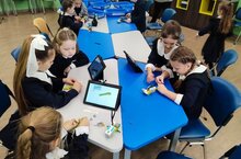Ученики 1А класса посетили первое занятие в Доме Научной Коллабарации. Одна группа создавала проект "Буквы", другая собирала робота.
