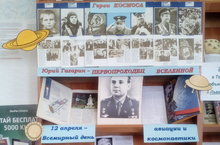 Книжная выставка ко Дню авиации и космонавтики развёрнута для детей в читальном зале школьной библиотеки. Эта популярная дата отмечается в России 12 апреля, ведь наша страна – родина космонавтики. В России родились первые идеи освоения космоса, были осуществлены первые важнейшие шаги в покорении космического пространства. В России же родились достойные сыны своего Отечества, люди, чьи имена прославили нашу страну во всём мире, осваивая космос. На выставке представлена галерея «Героев космоса».
