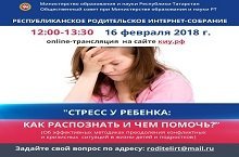 16 февраля 2018г. с 12.00 до 13.30 состоится Республиканское родительское интернет-собрание по теме "Стресс у ребёнка: как распознать и чем помочь?"