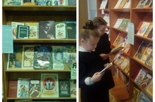 И вновь в школьной библиотеке оформлена выставка «Путешествие с героями Жюль Верна», посвященная 1 90-летию писателя-фантаста.